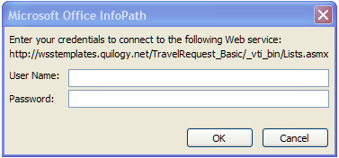 Why is the InfoPath form trying to connect to this Web Service? Simple. There are lists embedded in the form that are being loaded from it and need information from the site. Of course you don't have credentials for their site plus you'll want your forms to be reading from your own site. So here's how to fix this.