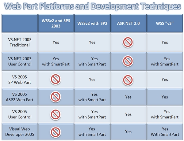This version will ship with the 2007 Microsoft Office System, including the SharePoint servers. Additionally you can install the SmarPart so ASP.NET 2.0 user controls can be used on this platform. - Development Techniques