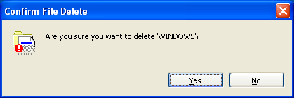 Now, I didn't go to C:\Windows and press delete, I noticed my recycle bin was full. So, Right Click -> "Empty". Boy its a good thing I don't want to delete that... "No".